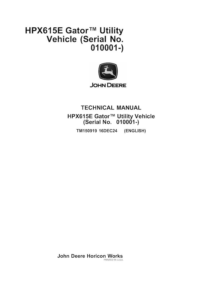 John Deere HPX 615E Gator utility vehicle pdf technical manual (TM150919)