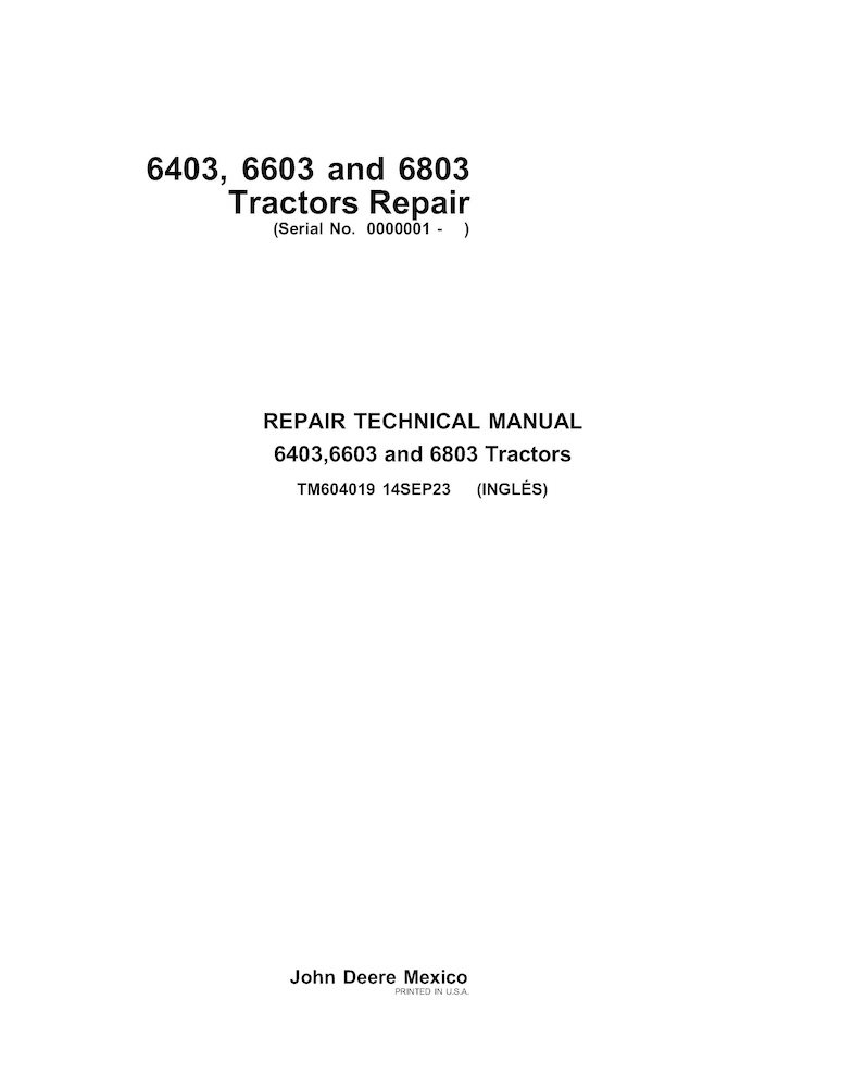 John Deere 6403, 6603, 6803 tractor pdf repair technical manual (TM604019)