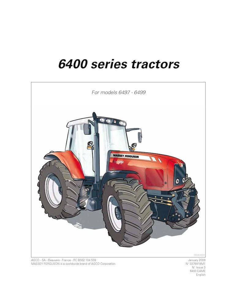 Massey Ferguson 6497, 6499 tractor pdf operator's manual (3378818M1)