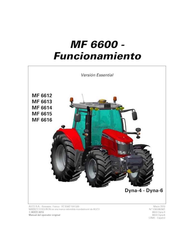 Massey Ferguson 6612, 6613, 6614, 6615, 6616 DYNA-4, 6 Version Essential tractor pdf operator's manual ES (7060460M1)