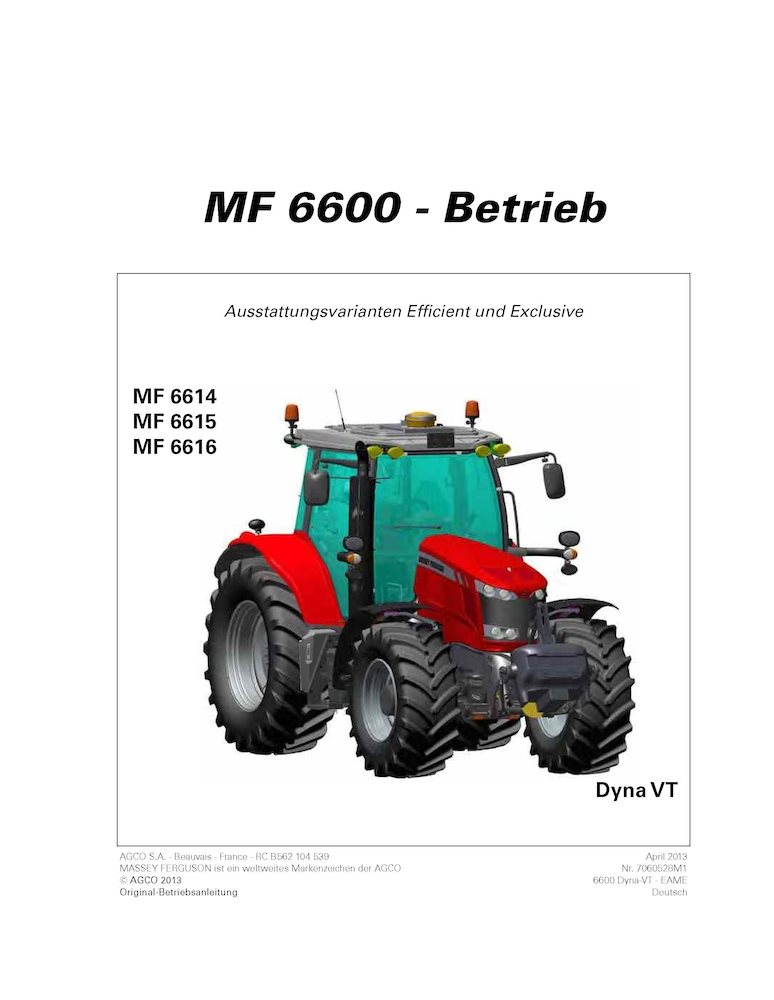 Massey Ferguson 6614, 6615, 6616 DYNA- VT Efficient and Exclusive versions tractor pdf operator's manual DE (7060528M1)