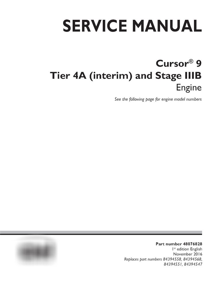 New Holland Cursor 9 Tier 4A and Stage IIIB engine service manual