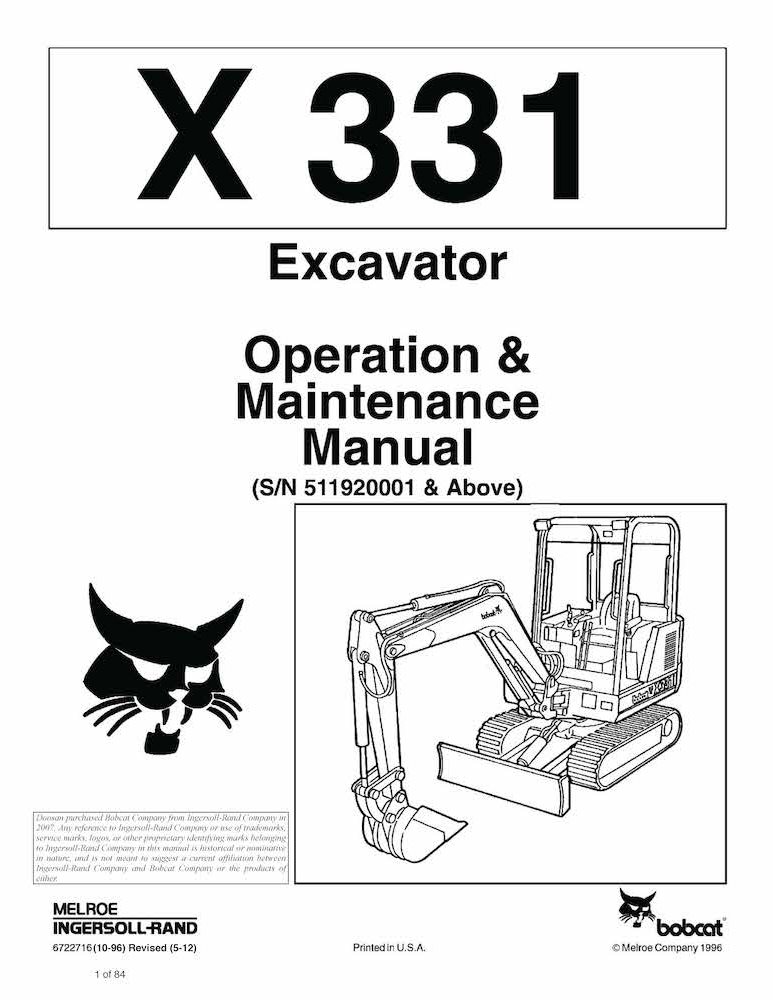 Manual de operação e manutenção da escavadeira compacta Bobcat X331