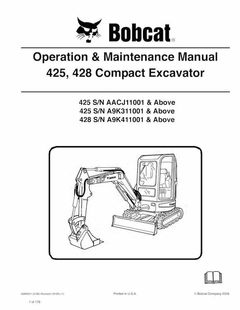 Manual de operação e manutenção da escavadeira compacta Bobcat 425