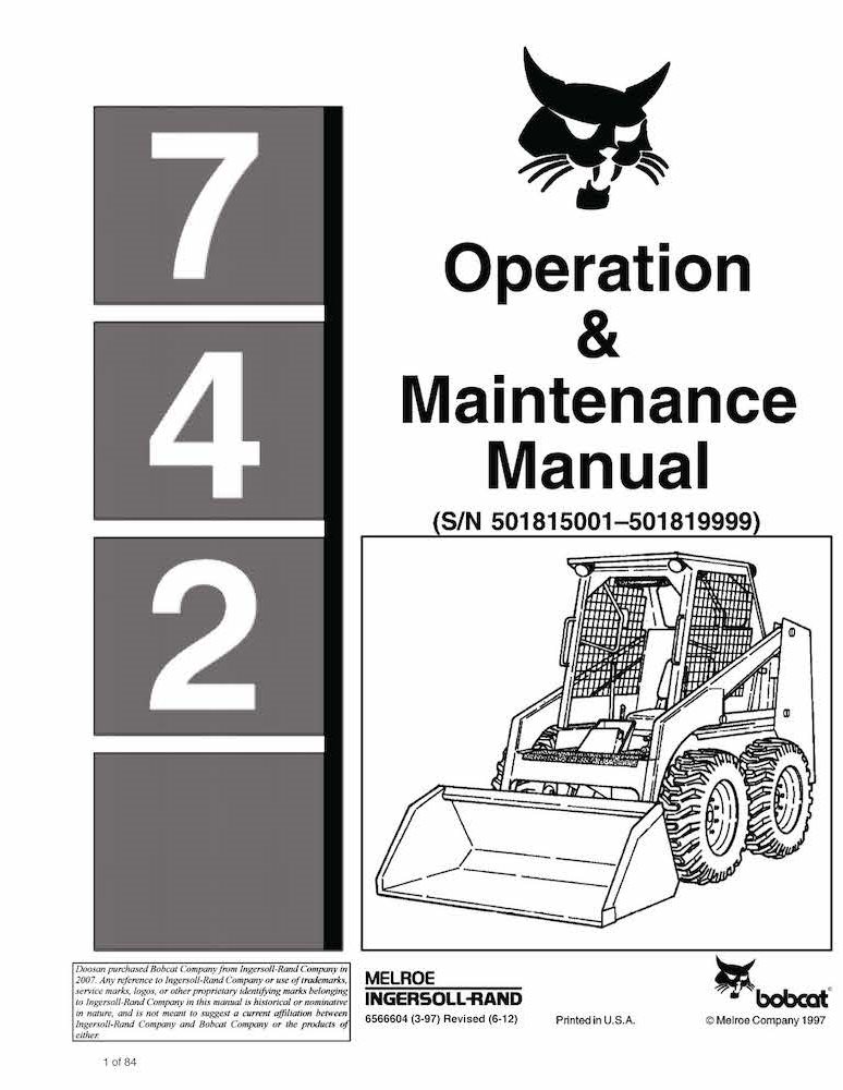 Minicarregadeira Bobcat 742 manual de operação e manutenção em pdf