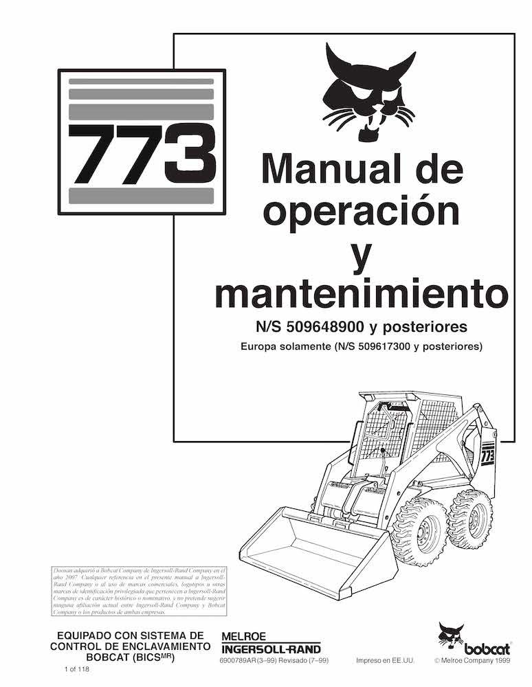 Minicarregadeira Bobcat 773 pdf manual de operação e manutenção ES