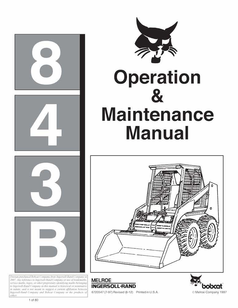 Minicarregadeira Bobcat 843B manual de operação e manutenção em pdf