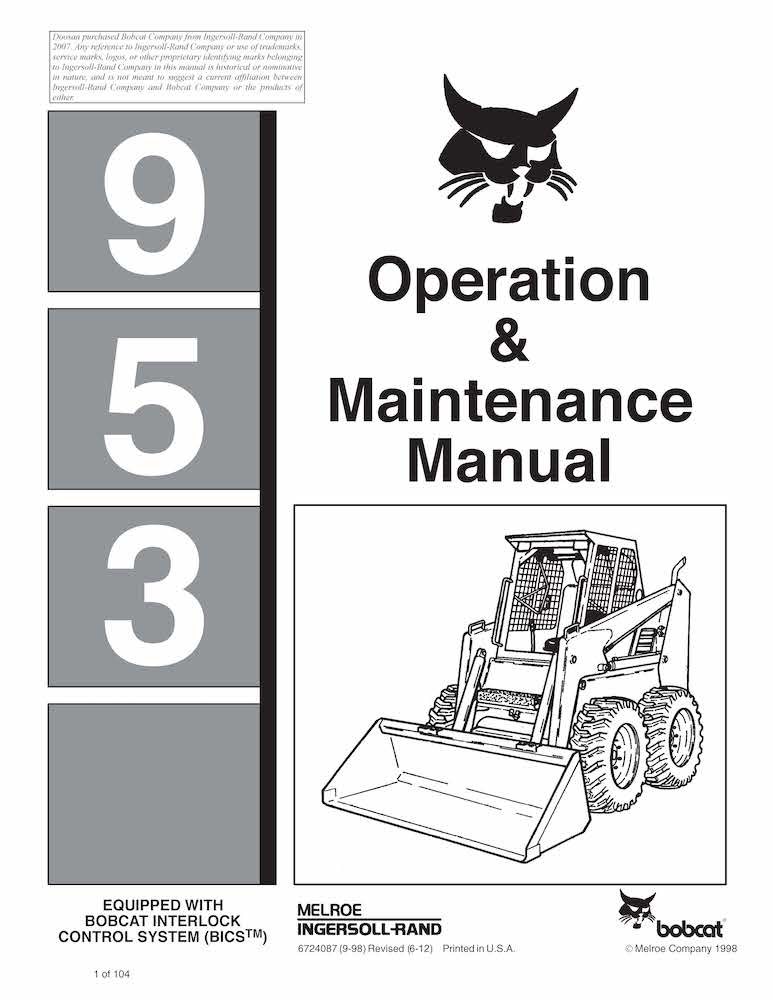 Minicarregadeira Bobcat 953 manual de operação e manutenção em pdf