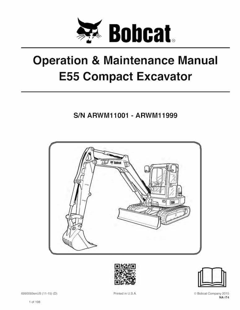 Manual de operação e manutenção da escavadeira compacta Bobcat E55