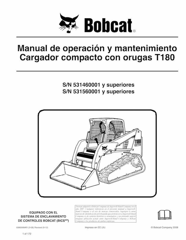 Manual de operação e manutenção em pdf da carregadeira de esteira compacta Bobcat T180 ES