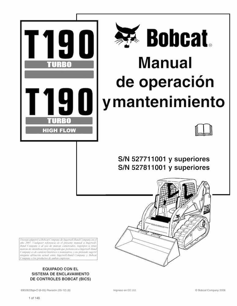 Manual de operação e manutenção em pdf da carregadeira de esteira compacta Bobcat T190 ES