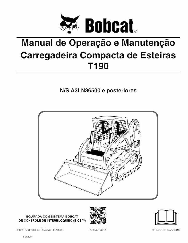 Manual de operação e manutenção em pdf da carregadeira de esteira compacta Bobcat T190 PT