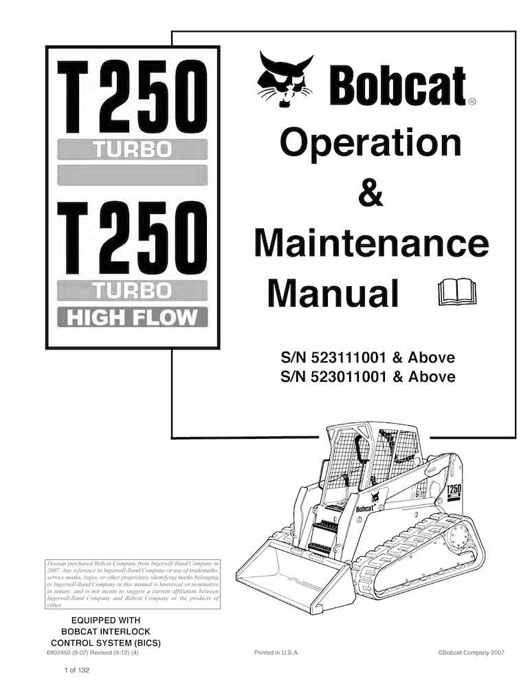 Bobcat T250, T250H compacta carregadeira de esteira pdf manual de operação e manutenção