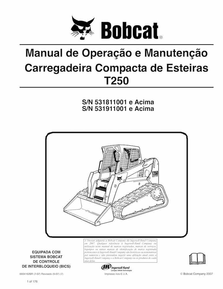 Manual de operação e manutenção em pdf da carregadeira de esteira compacta Bobcat T250 PT