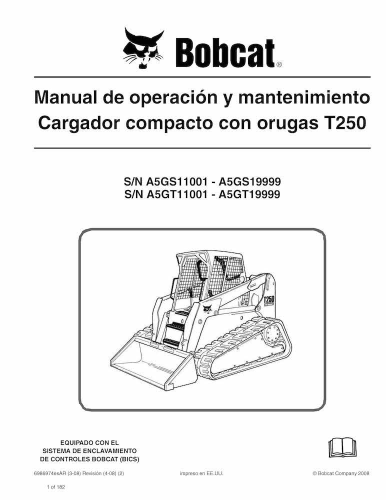 Manual de operação e manutenção em pdf da carregadeira de esteira compacta Bobcat T250 ES