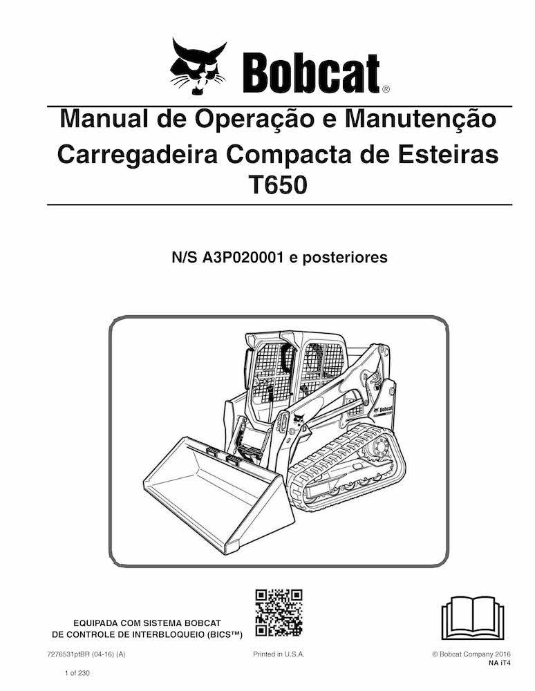 Manual de operação e manutenção em pdf da carregadeira de esteira compacta Bobcat T650 PT