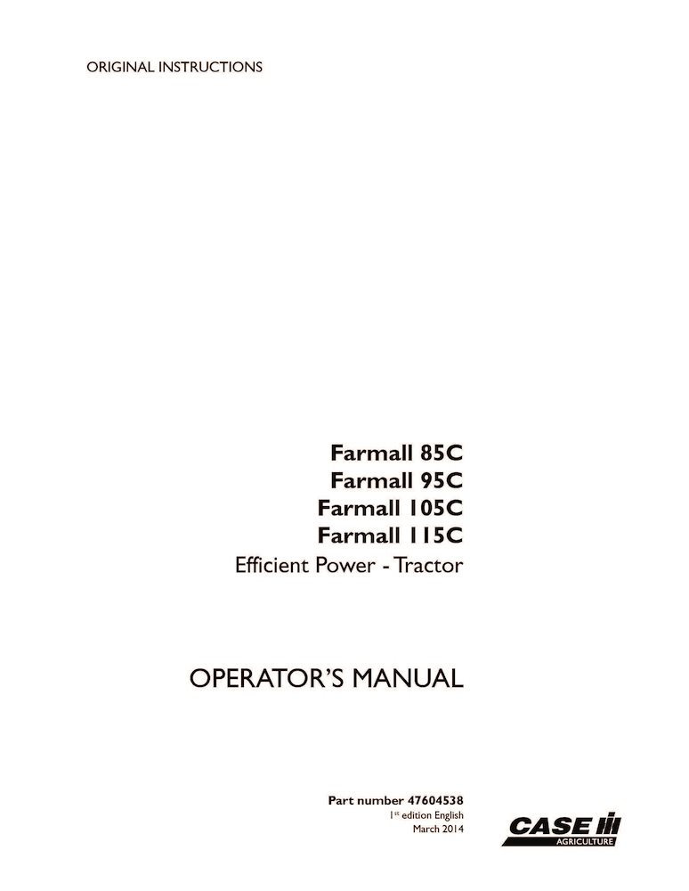 Manual do operador do trator Case Farmall 85C, 95C, 105C, 115C em PDF (47604538)
