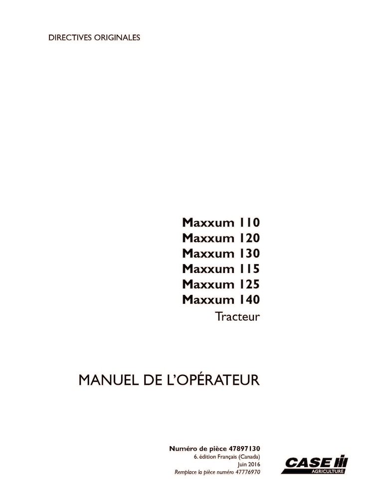 Manual do operador do trator Case Maxxum 110, 115, 120, 125, 130, 140 em PDF FR (47897130)