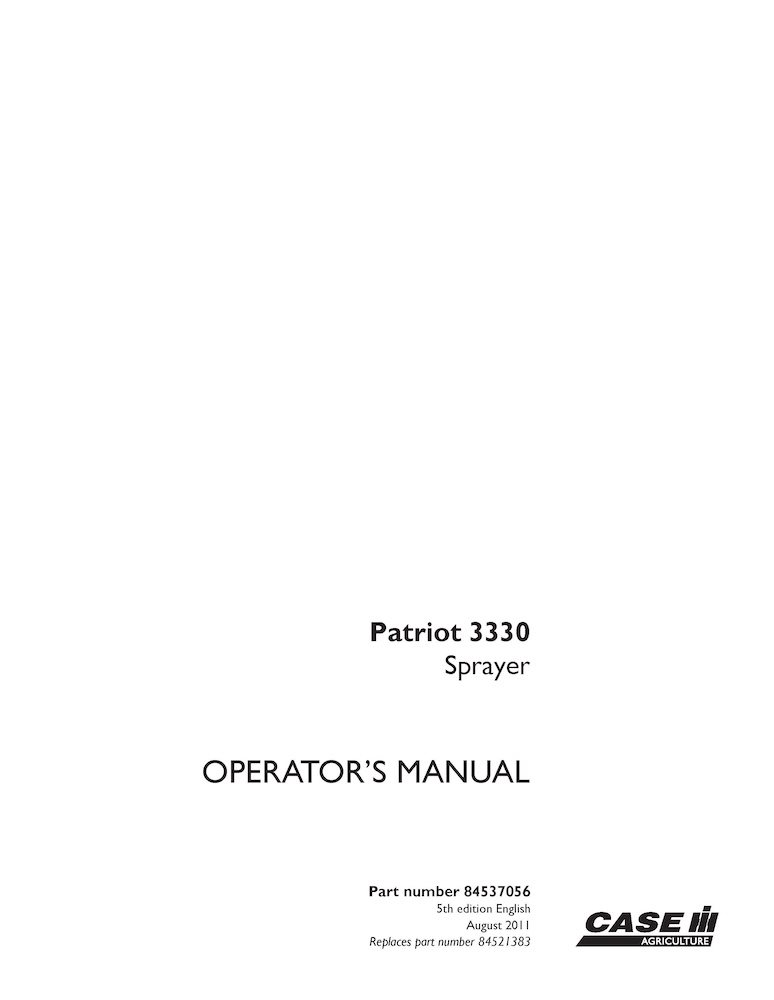 Manual do operador do pulverizador Case Patriot 3330 em PDF (84537056)