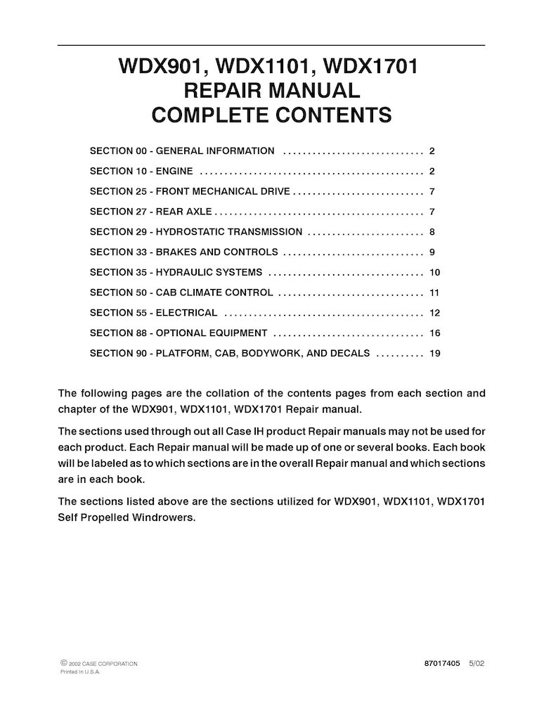 Manual de serviço em PDF da enfardadeira Case WDX901, WDX1101, WDX1701 (86630611)