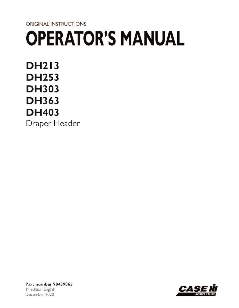 Manual do operador do cabeçalho Draper Case DH213, DH253, DH303, DH363, DH403 em PDF (90439865)