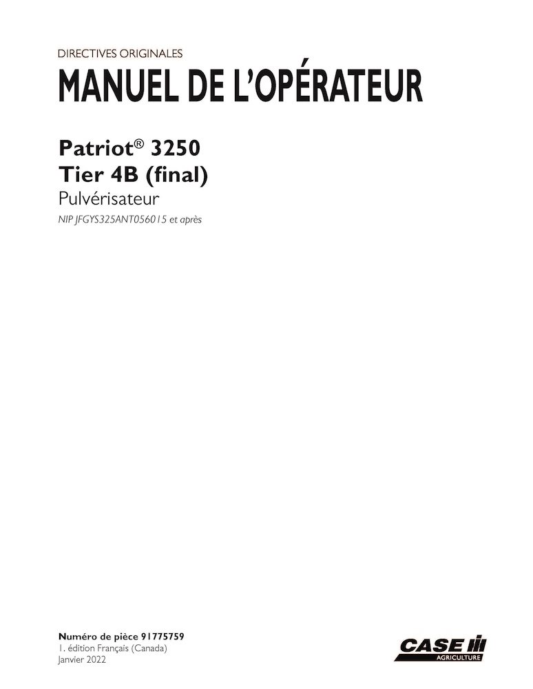 Manual do operador do pulverizador Case Patriot 3250 PIN JFGYS325ANT056015 em PDF FR (91775759)