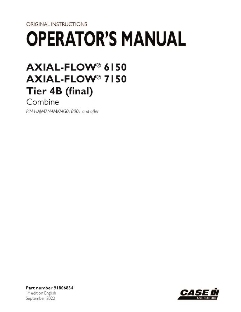 Case Axial Flow 6150, 7150 Tier 4B PIN HAJM7N4MKNG018001 - manual do operador em PDF (91806834)