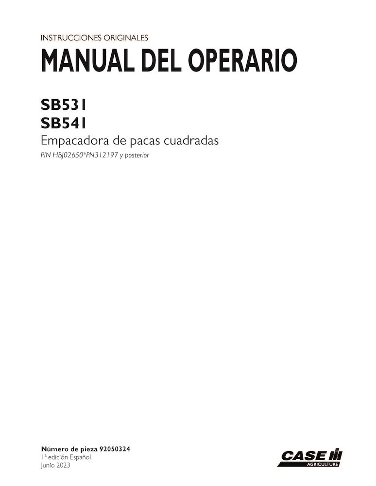Manual do operador da enfardadeira Case SB531, SB541 PIN xPN312197 em PDF ES (92050324)