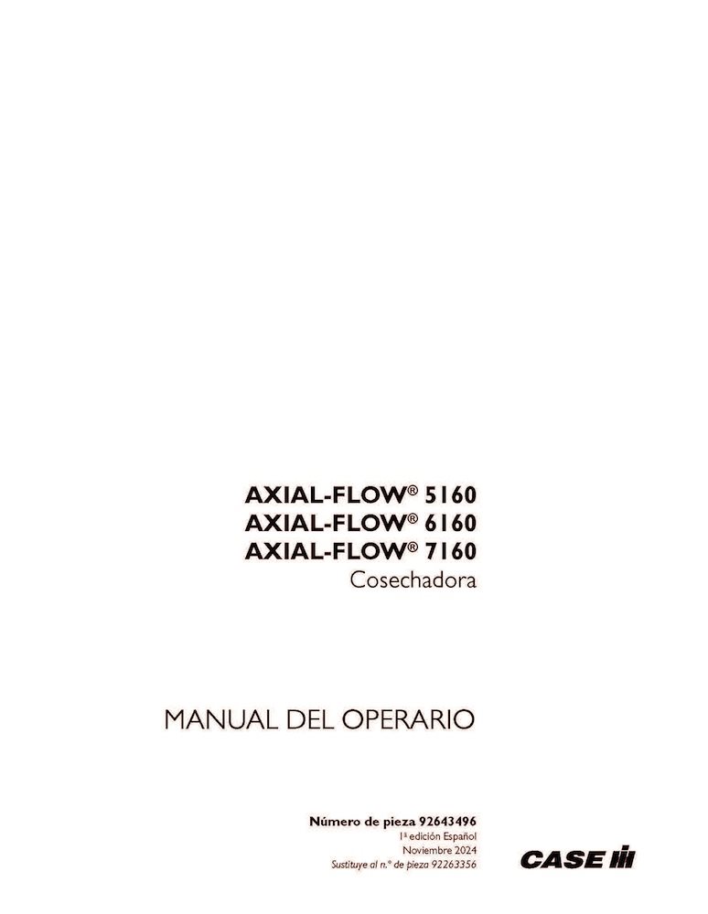 Manual do operador da colheitadeira Case Axial Flow 5160, 6160, 7160 em PDF (92643496)