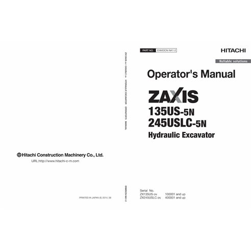 Manual do operador da escavadeira Hitachi 135US-5N, 245USLC-5N pdf