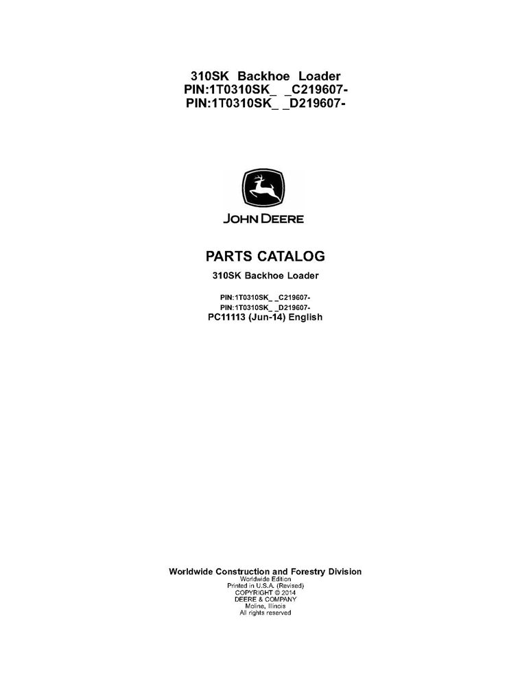 Catálogo de peças em PDF da retroescavadeira John Deere 310SK PIN 1T0310SK_ _C_D_219607 (PC11113)