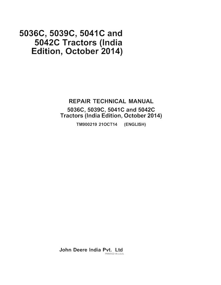 Manual técnico de reparo em PDF para tratores John Deere 5036C, 5039C, 5041C e 5042C (TM900219)