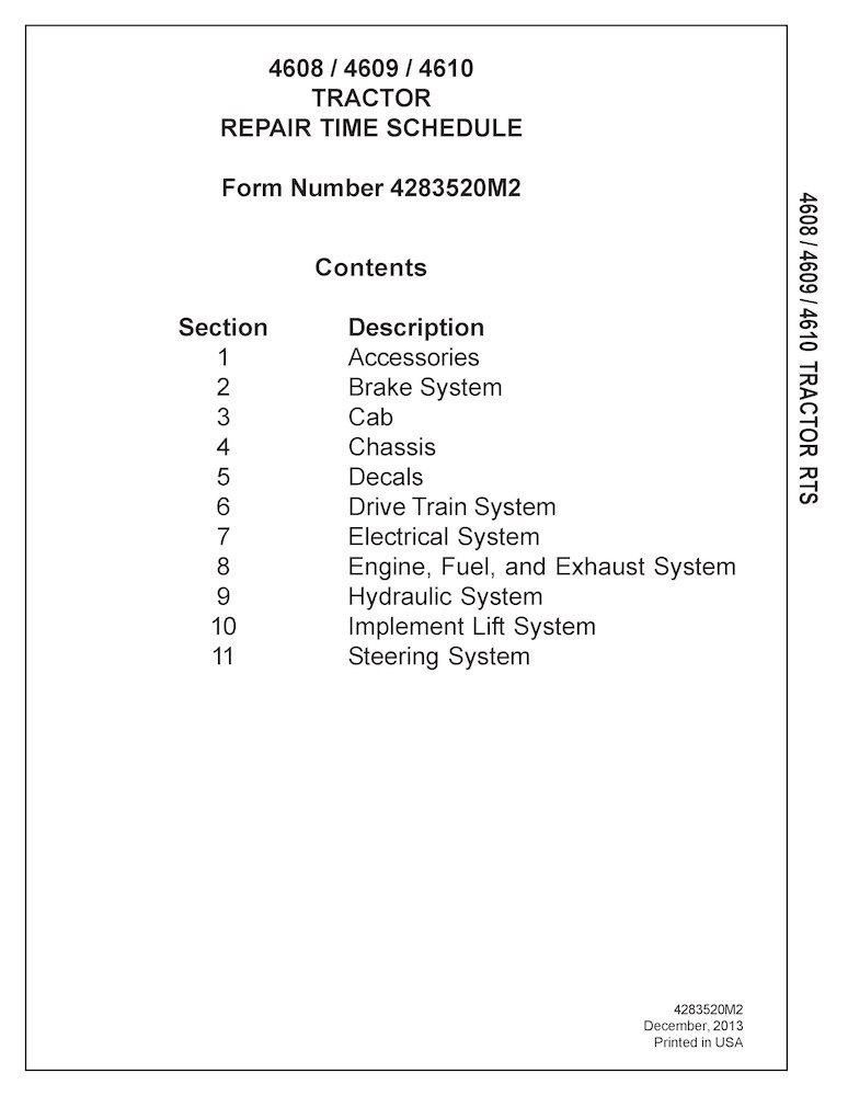 Cronograma de reparos do trator Massey Ferguson 4608, 4609, 4610 em PDF (4283520M2)