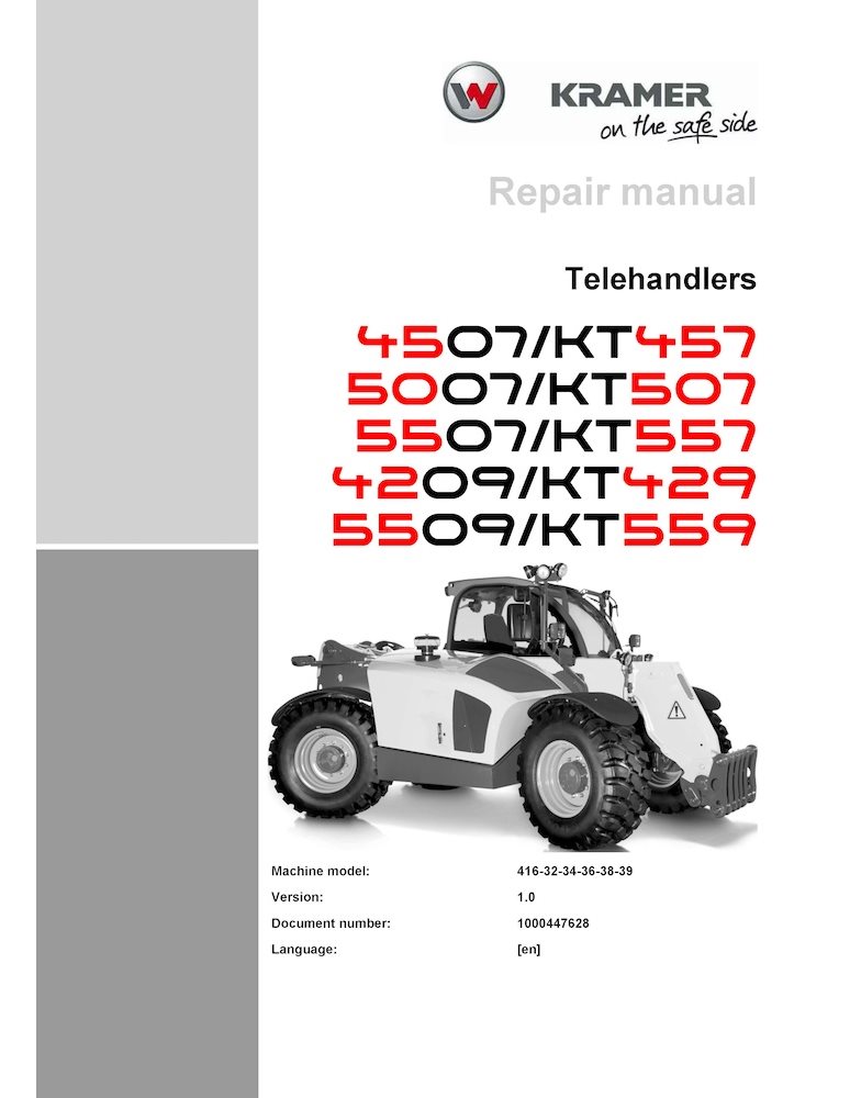 Modelos: Kramer 4507, KT457, 5007, KT507, 5507, KT557, 4209, KT429, 5509, KT559 Manipuladores telescópicos. Modelos de máquinas: 416-32, 416-34, 416-36, 416-38, 416-39