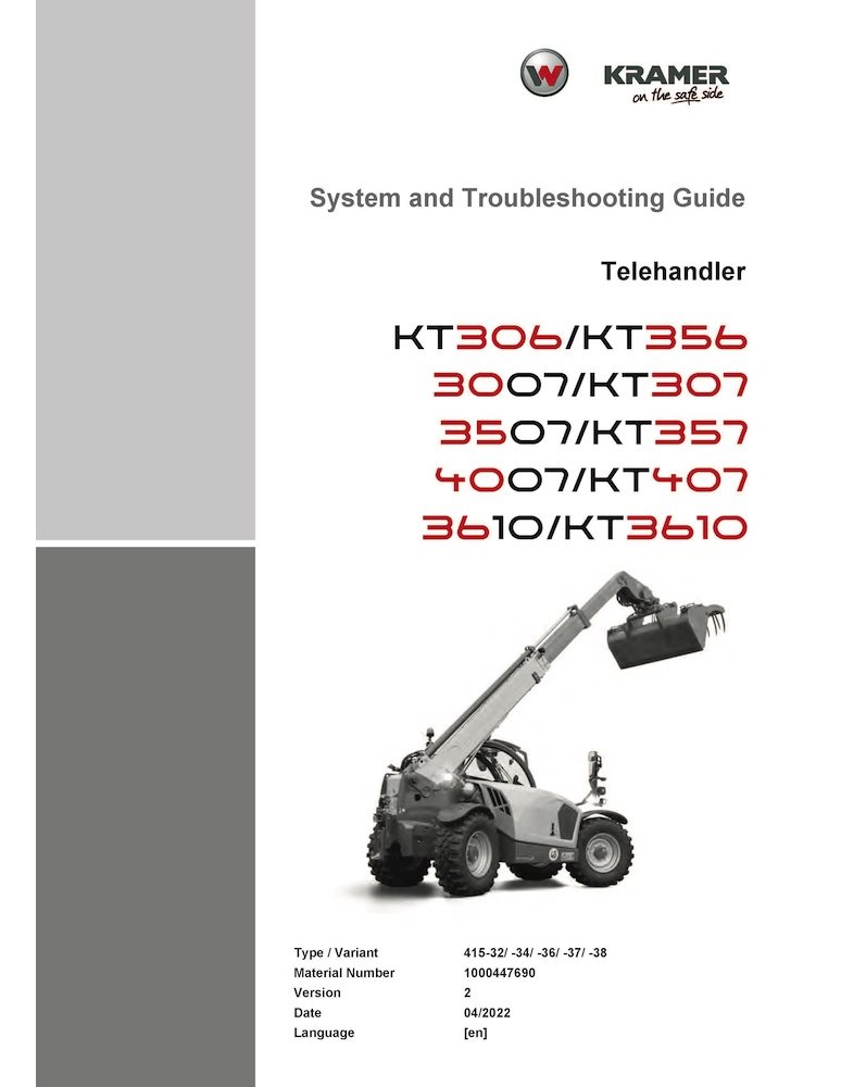 Models: Kramer KT306, KT356, 3007, KT307, 3507, KT357, 4007, KT407, 3610, KT3610 Telehandlers. Machine models: 415-32, 415-34, 415-36, 415-37, 415-38